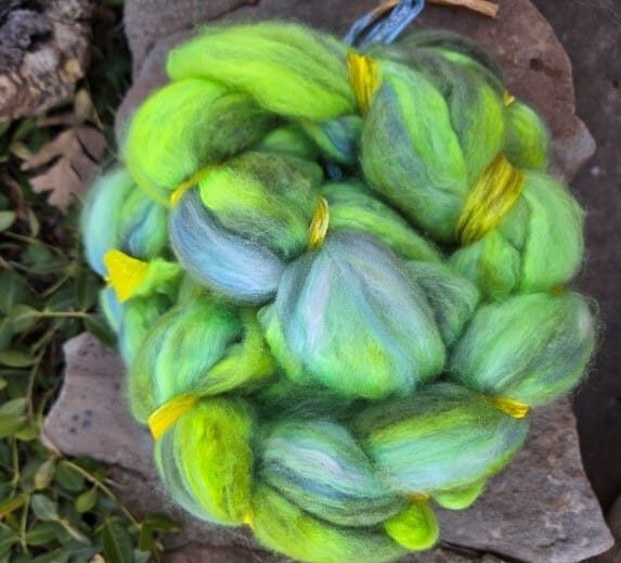 Ultra-soft hand-dyed fiber blend of 70% merino and 30% silk in variegated shades of green. Smooth, luxurious, and lightly lustrous, it’s perfect for spinning, felting, weaving, and more.